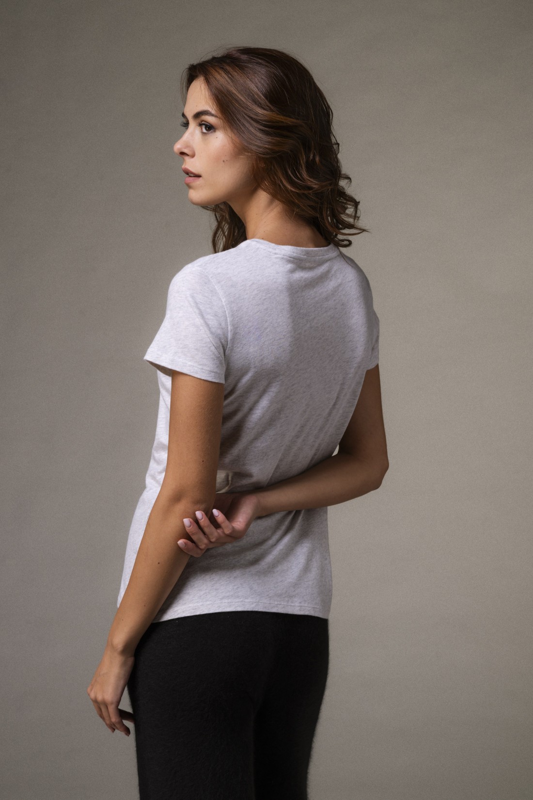 T-shirt basica girocollo in 100% Cotone Deluxe con manica corta e vestibilità slim: un capo passepartout semplice e versatile. La composizione in Cotone Deluxe rende questa maglia confortevole e morbida al tatto, perfetta sia per look eleganti che per look essenziali.