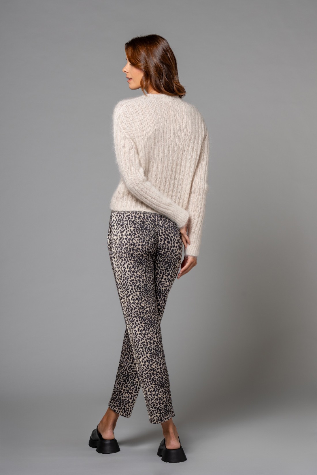 Jogger felpati animalier con coulisse in vita