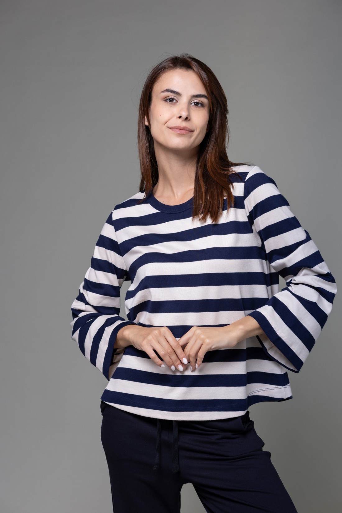 T-shirt a righe e maniche a tulipano in Heavy cotton