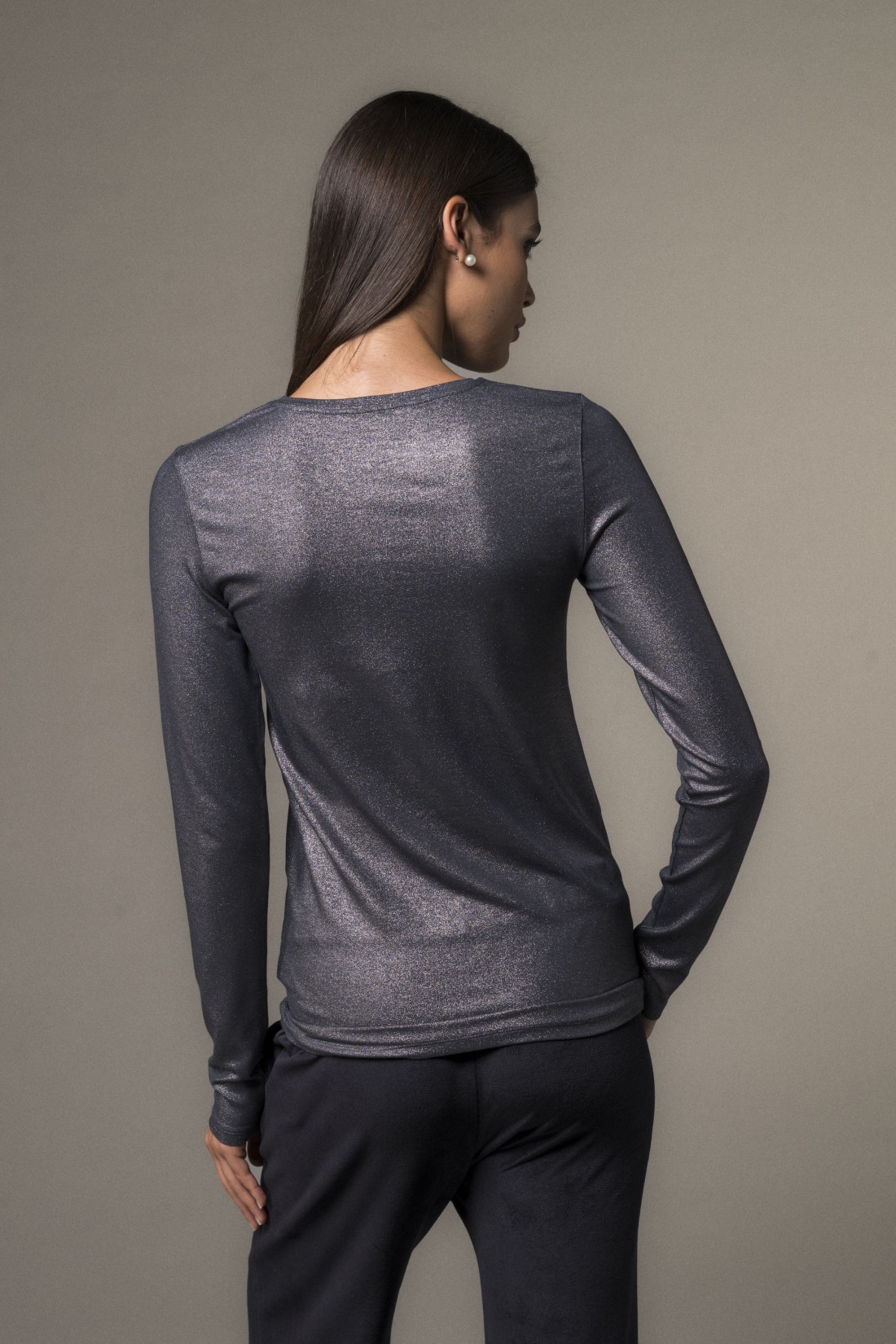 T-Shirt girocollo e maniche lunghe lurex