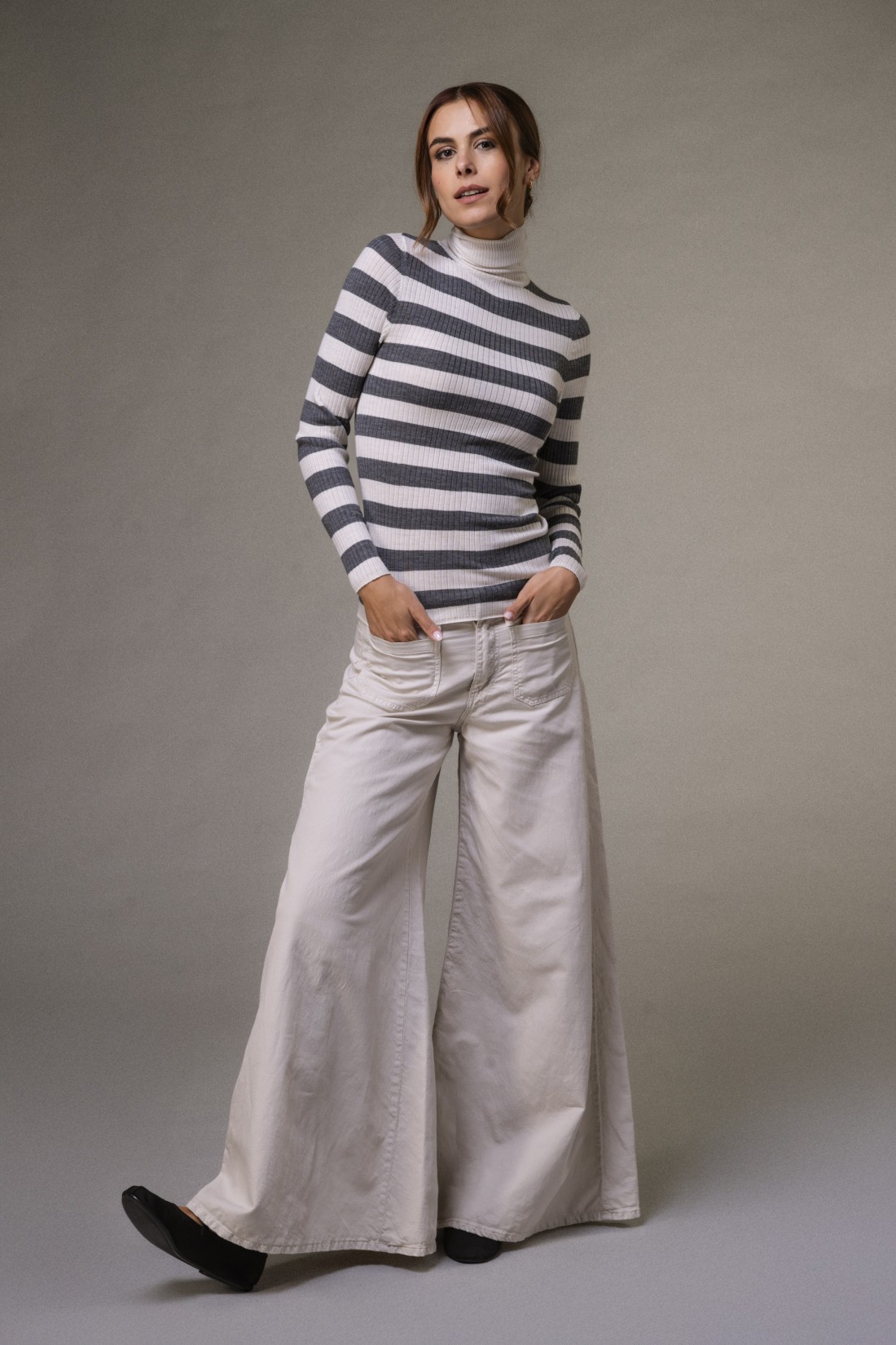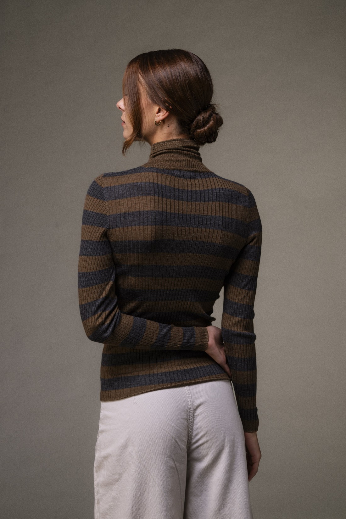 Maglia dolcevita a costine rigata