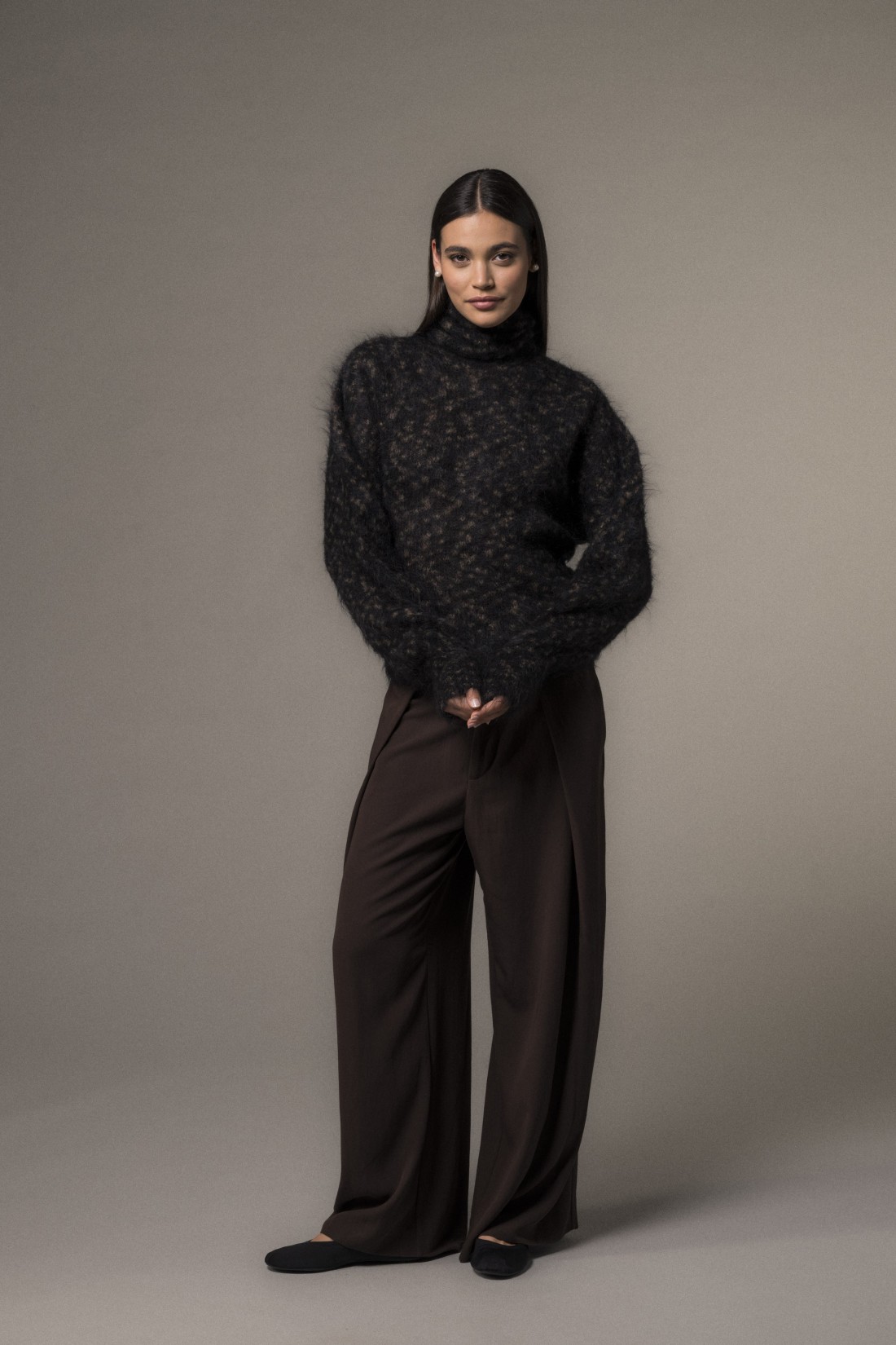 Maglia dolcevita vestibilità over. La composizione tra mohair e lana merinos lo rende molto caldo, soffice e particolarmente morbido al tatto, perfetto per le giornate più fredde, un capo contemporaneo e chic, che donerà un tocco speciale ai tuoi look invernali.